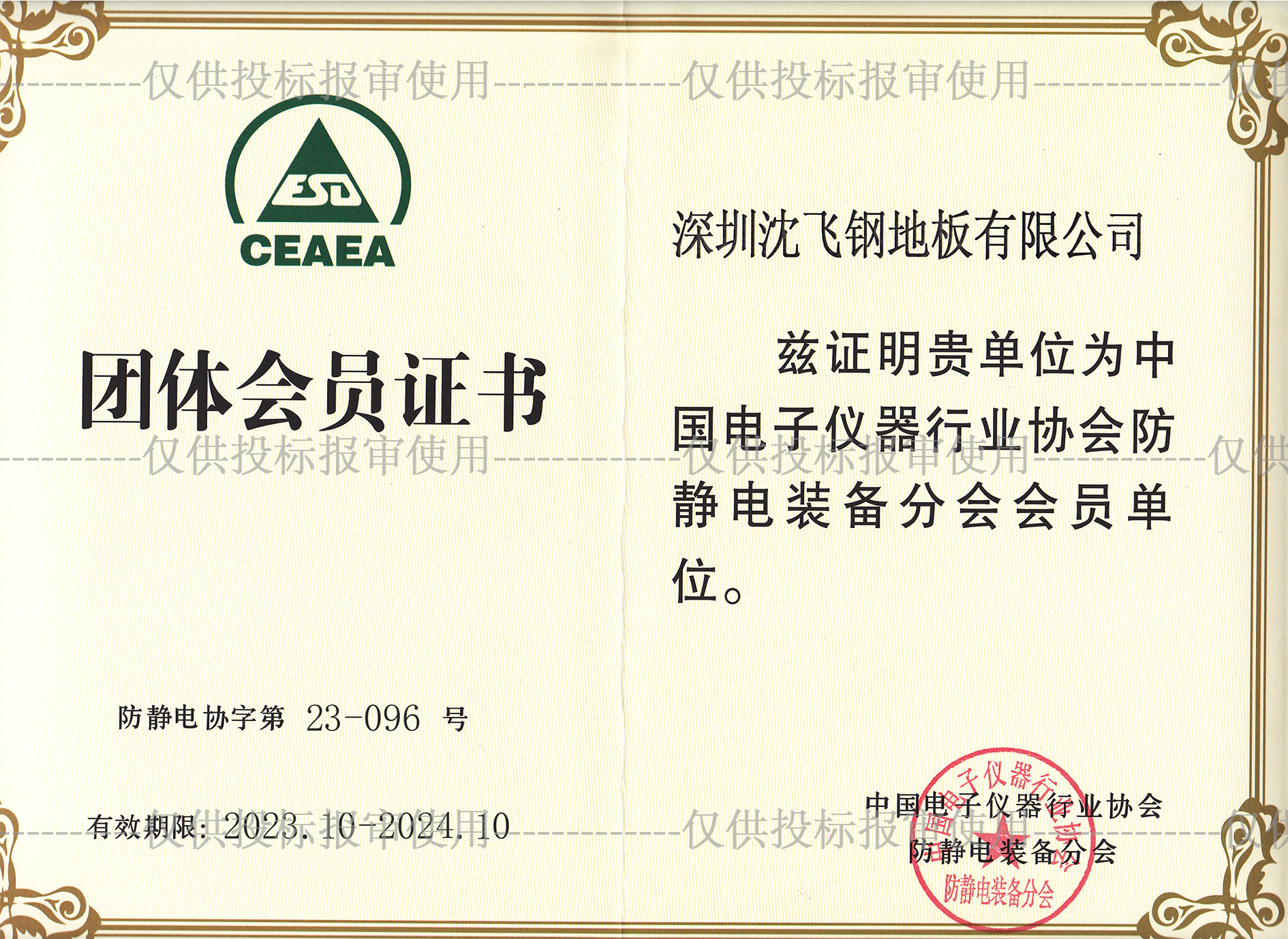 本公司加入中國電子儀器行業(yè)協(xié)會(huì)防靜電裝備分會(huì)會(huì)員,深圳沈飛鋼地板公司更加規(guī)范的生產(chǎn)、安裝、銷售防靜電裝備產(chǎn)品,嚴(yán)格的要求參照行業(yè)執(zhí)行標(biāo)準(zhǔn)進(jìn)行生產(chǎn)銷售安裝防靜電設(shè)備。